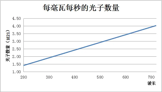 圖:相同輻射功率下,產(chǎn)生光子的數(shù)量隨著波長的增大而增加。