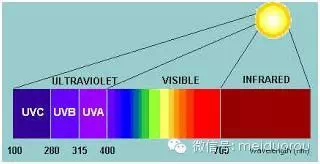 紫外線是不可見光。根據(jù)其波長,由短到長分為 UVC、UVB、和UVA。紫外線先在太陽光中含量為4%。其余96%為可見光。