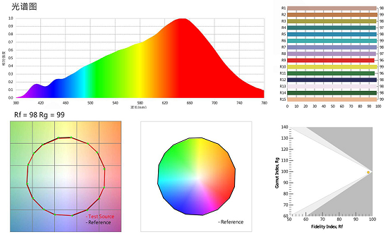 經(jīng)過對比,我們不難發(fā)現(xiàn)巨宏的似太陽光譜與真實太陽光譜的相識度之高,以及其波段的連續(xù)性和顯色指數(shù)與普通LED相比占有明顯的優(yōu)勢。