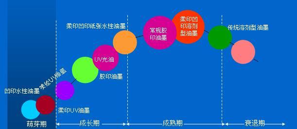 UV油墨目前在全球市場剛度過萌芽期,開始進(jìn)入成長期,它實(shí)現(xiàn)印刷業(yè)界長期夢寐以求的愿望——油墨在印刷機(jī)上穩(wěn)定(粘度不因溶劑揮發(fā)上升),而一旦轉(zhuǎn)移到印刷品上能立即干燥。