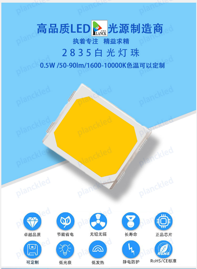 2835白光燈珠,色溫2700K、3000K、4000K、5000K、6000K,角度30°、60°可根據(jù)您的要求定制